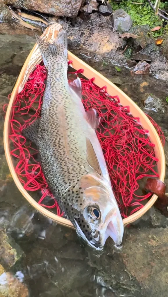 ニジマスを持って歩いてたらクマに襲われやすいかもとかがあったので持ち帰らず、キャッチアンドリリース。